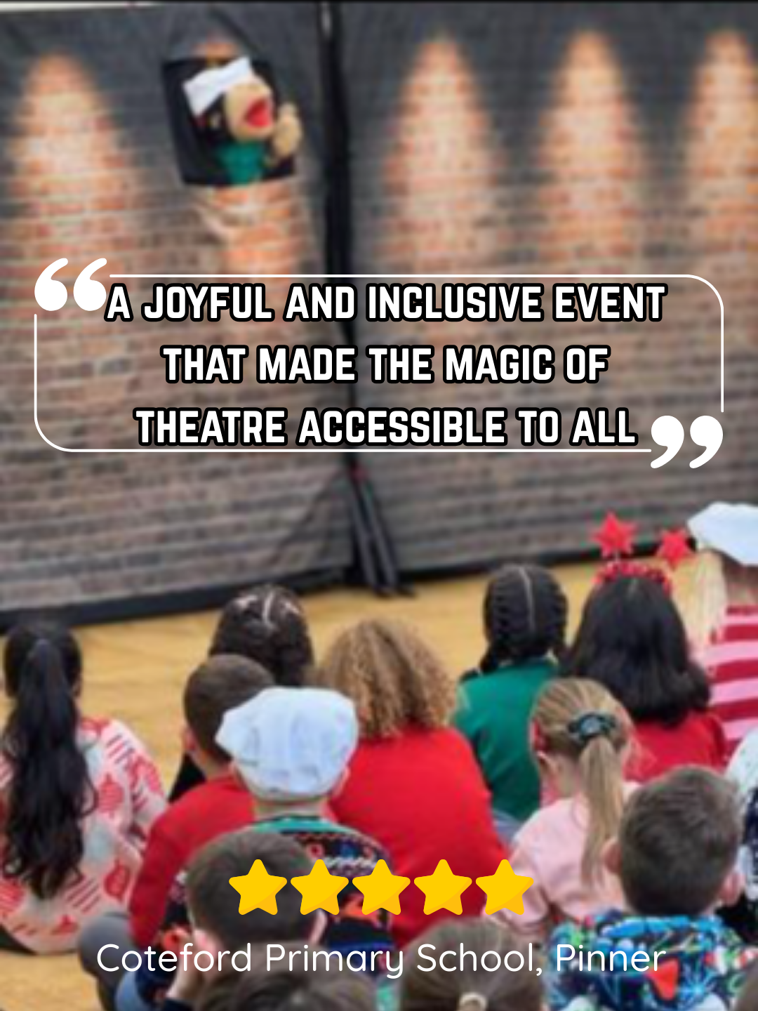 Sessions run for approx. 45 minutes, with the option of two performances in one day. Shows are available on weekdays and weekends and include a free resource pack. We also offer an optional pre-show Touch Tour, with Makaton signing and pre-recorded VOCAs (Big Macs) available on request, as part of our inclusive Sensory Storytelling options for schools and groups.